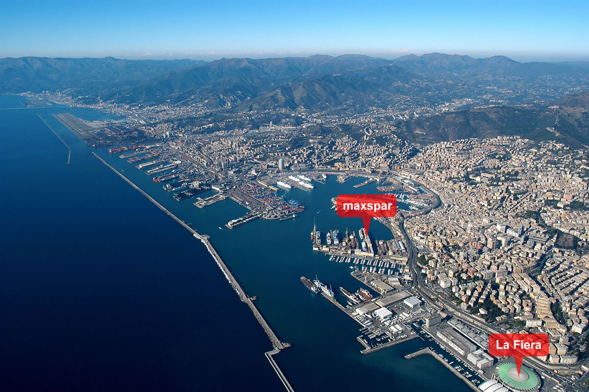 Entra nel Porto dal lato Est all'altezza del grande padiglione rotondo della Fiera del Mare.